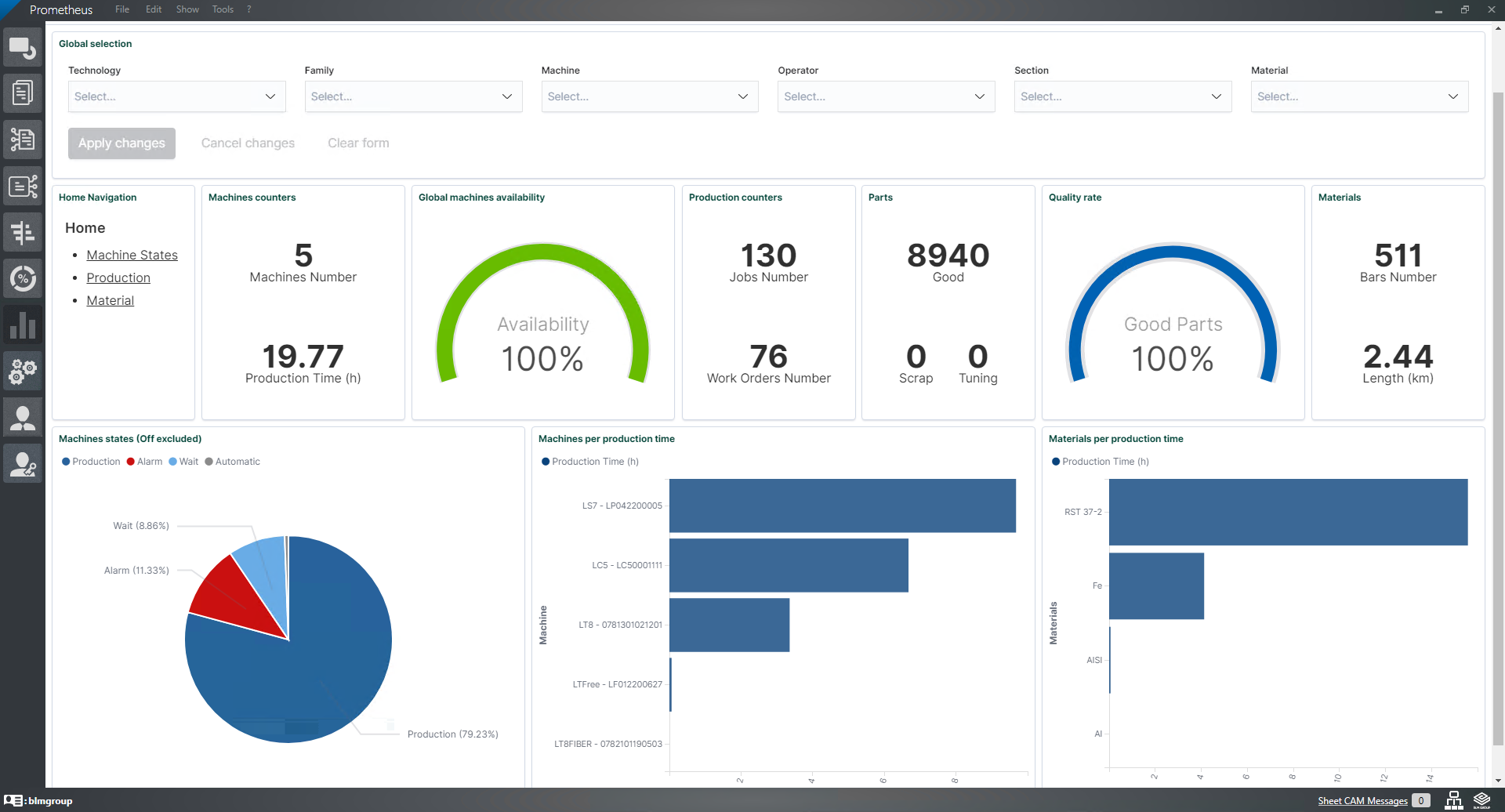 "ProTube Enterprise is the Manufacturing Execution System (MES) developed by our Software Division for production management of BLM GROUP's tube processing, cutting and bending machines, with an awareness of the ever-increasing importance of software in the development of advanced manufacturing solutions," Benatti explains. "Now this system is being extended to embrace sheet metal processing as well, thus creating a single platform for all the Group's production lines. ProTube Enterprise therefore changes its name and becomes Prometheus, keeping the fundamental aspects unchanged: a single communication interface with the customer's ERP, a single order and job management system, a single planning system and a single monitoring dashboard."